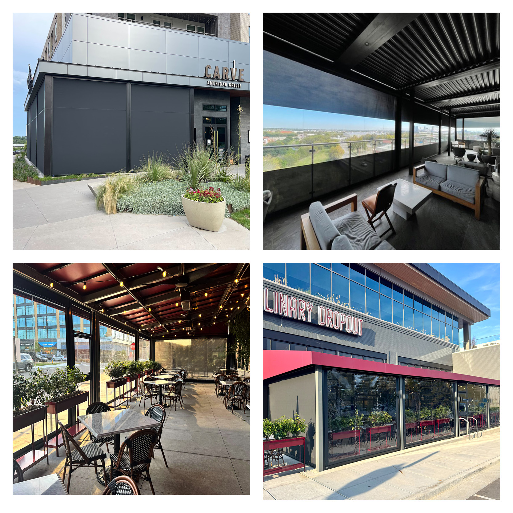 Whether you manage a single location or oversee multiple franchises, we bring a unique combination of engineering expertise and hospitality-focused design. Our enclosures are tailored to the form and function of each location, ensuring the result is as practical as it is visually seamless. From fully automatic sun shades to clear patio enclosures that protect against wind, rain, and cold, we help restaurants of every size reimagine what their patio can be. The result is a better guest experience, improved operational flexibility, and an outdoor space that becomes a true business asset—not just an accessory.